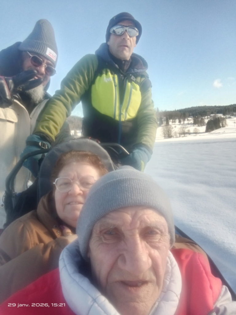 Le jeudi 29 janvier 2026, les résidents de la pension de famille ont eu la chance de vivre une journée exceptionnelle à la découverte des chiens de traîneau, dans le Jura, à Morbier. L’objectif était de proposer une activité à la fois dépaysante et accessible, favorisant le lien social, et un moment de bien-être physique et psychologique.