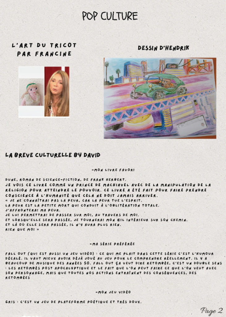 De nombreuses personnes ont saisi cette opportunité pour nous transmettre leur savoir faire à travers l’écriture de texte et la conception de différentes œuvres (dessins, peintures, photos). Un vernissage a eu lieu le 29/08/2025 et les œuvres ont été exposées tout le mois de septembre dans la salle de réunion du 5 bis rue de la manutention.